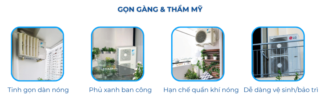 | Thẩm mỹ | Gọn gàng, ít dàn nóng, giữ kiến trúc đẹp | Nhiều dàn nóng, dễ gây rối mắt |