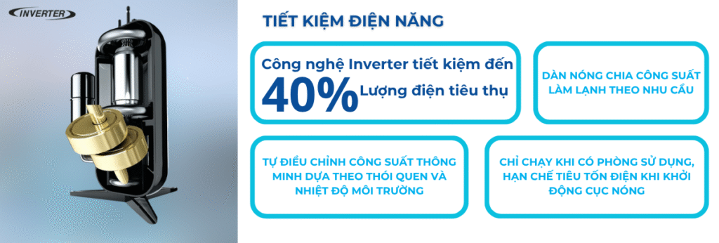 Tiết kiệm điện năng – Công nghệ Inverter tối ưu, giảm chi phí sử dụng.