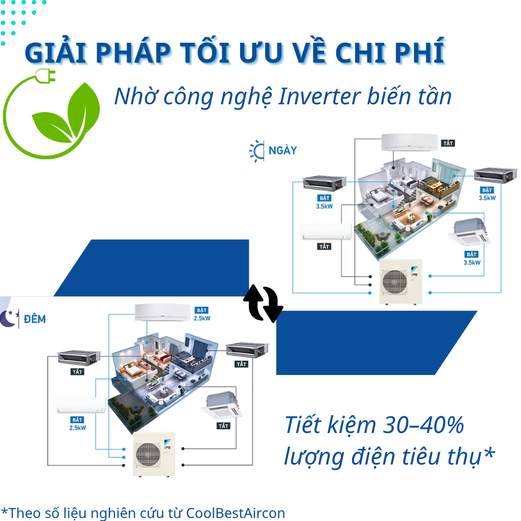 • Tiết kiệm điện năng vượt trội nhờ công nghệ biến tần và khả năng điều chỉnh tải thông minh.