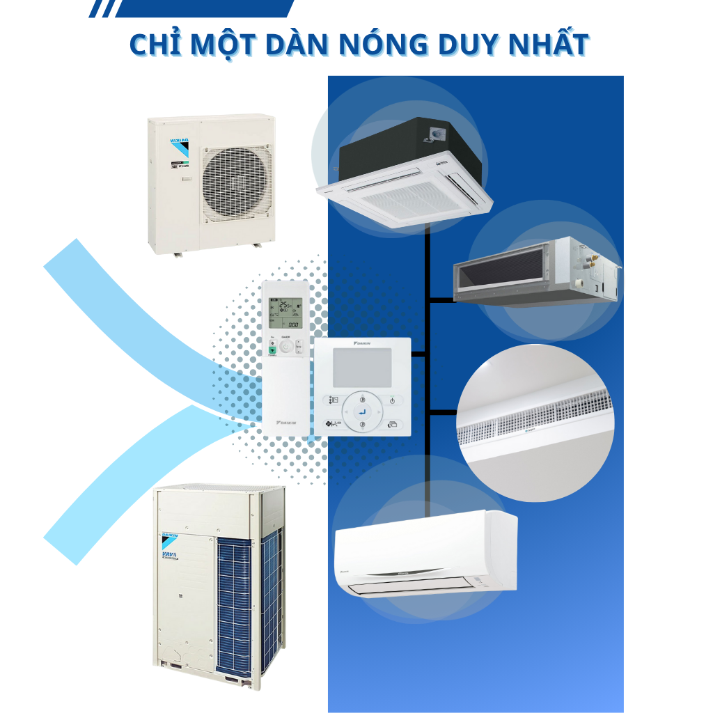 • Một dàn nóng kết nối được nhiều dàn lạnh (lên đến vài chục dàn), phù hợp cho công trình diện tích lớn.